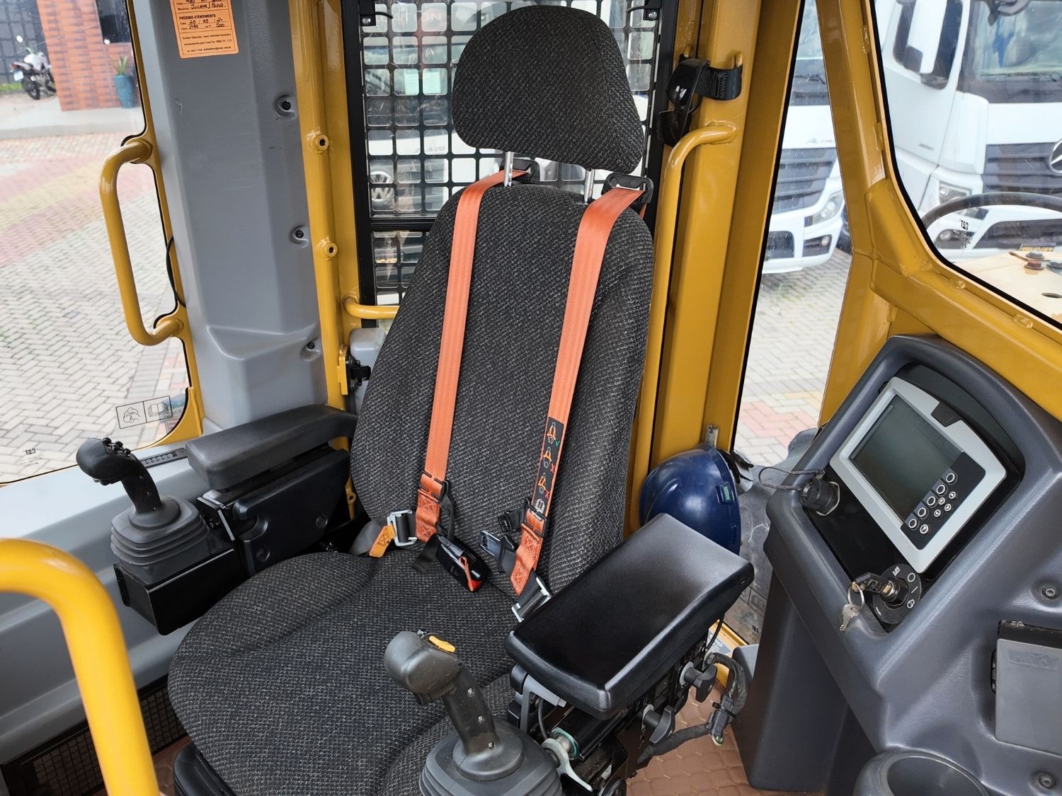 Assento com suspensão a ar e cinto de segurança tipo arnês